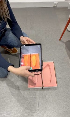 Die Füße werden gescannt oder vermessen und die Teilnehmenden erhalten direkt eine Auswertung (z. B. Fußtyp, Druckverteilung).